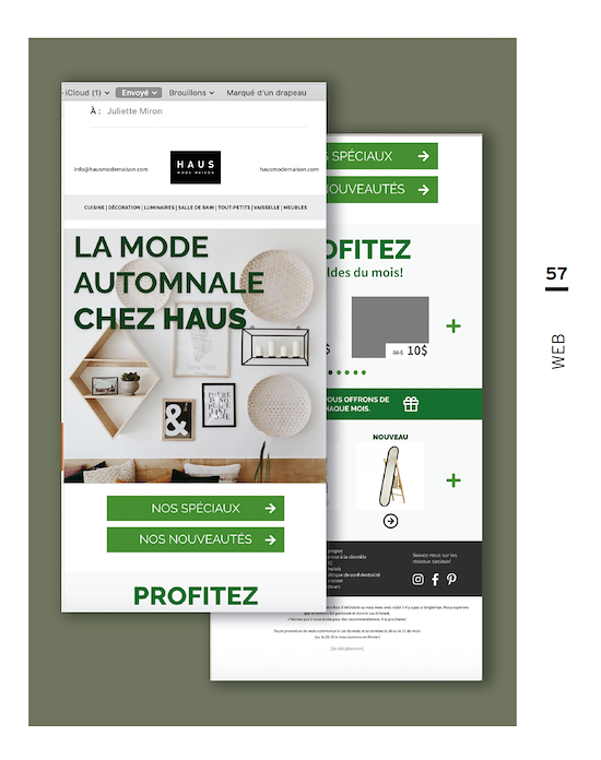 Hypothetical newsletter for the House decor company HAUS in Sherbrooke, Canada. Done through the design DEC at Cegep de Sherbrooke.